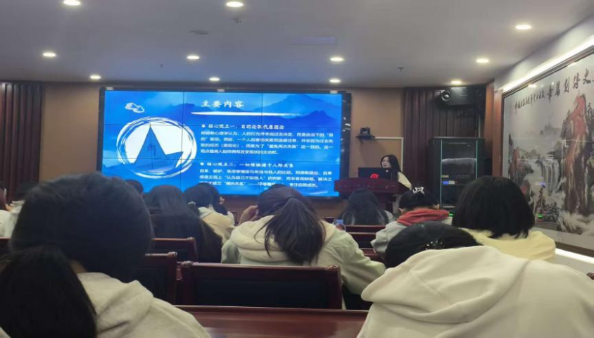 此次分享会由协会指导老师游迟主持,两位24级同学依次带来精彩分享。来自24广告艺术4班的周之茜,以《此刻是春天》为主题,从“季节隐喻与生命成长”、“文字里的温柔力量”两个维度展开,她提到:“这本书里的春天不是季节,是困境里‘再等一等’的希望——哪怕此刻是寒冬,心里的春天也能靠自己种出来。”随后,24广告艺术4班的赵玲娜分享《被讨厌的勇气》,结合“课题分离”、“自我接纳”等核心概念,用生活中的小事举例:“我们总在在意‘别人怎么看’,但‘被讨厌’其实是‘做自己’的入场券——把别人的期待还回去,才能接住自己的人生。”