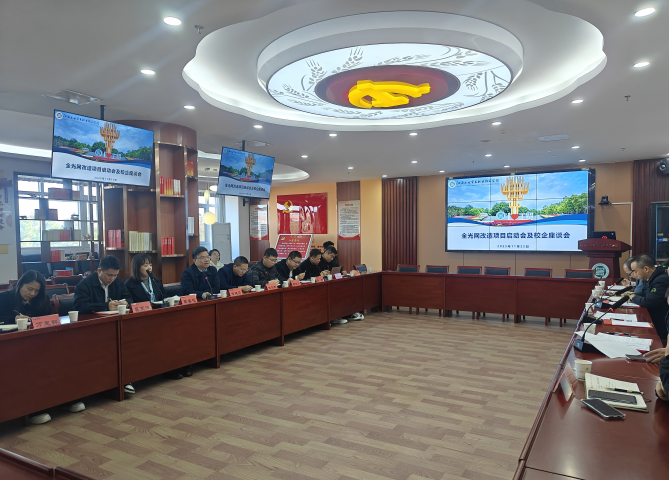根据江西省教育厅、江西省通信管理局共同印发的《关于进一步规范高等学校网络建设管理和应用服务的通知》【赣教规划字[2023]19号】要求,为深入贯彻落实国家“双高计划”建设要求,为提升校园网络基础设施水平,满足师生教学、办公及生活的网络需求,赋能教育数字化转型。2025年11月25日上午,学院在图书馆仓廪实党员活动室举行“全光网改造项目启动会及校企座谈会”。学院党委副书记、院长朱迎强,党委委员、副院长刘国红,信息中心人员、项目中标单位江西广投产业运营服务有限责任公司(以下简称“江西广投”)代表以及三大运营商负责人共同参加会议。会议由刘国红主持。
